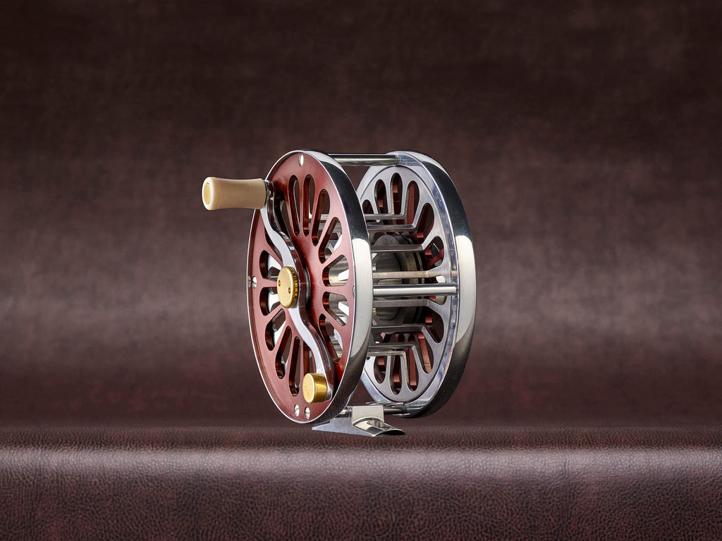 A classic salmon reel is something to treasure and to share memories with through generations. The SALAR 'Burgundy' Reels are the second series where classic traditions meet innovative engineering. Every millimeter is considered: from the sealed disc drag system, salt water resistant aluminum and drop-formed braking adjustment to the classy burgundy side plates, polished oval rims, ivory replica S-handle and brass details – all make a reel that withstands the forces of nature and ages with beauty. Thousands of fish have already been caught with these reliable "workhorses", even great salmon up to 50+ lbs. SALAR Reels are the toughest of the toughest – they spin like panthers and take a beating like a grizzly! Made in a German state of the art reel factory in collaboration with Ralf Vosseler.